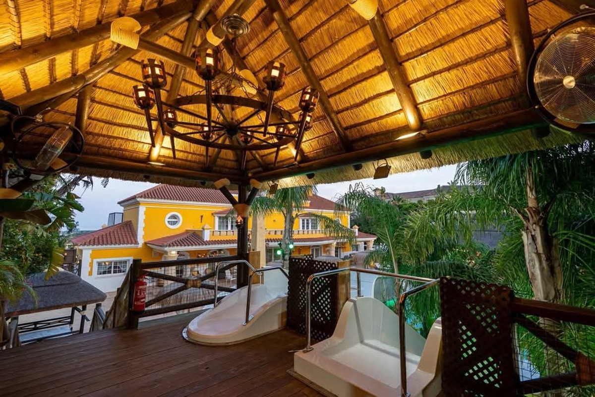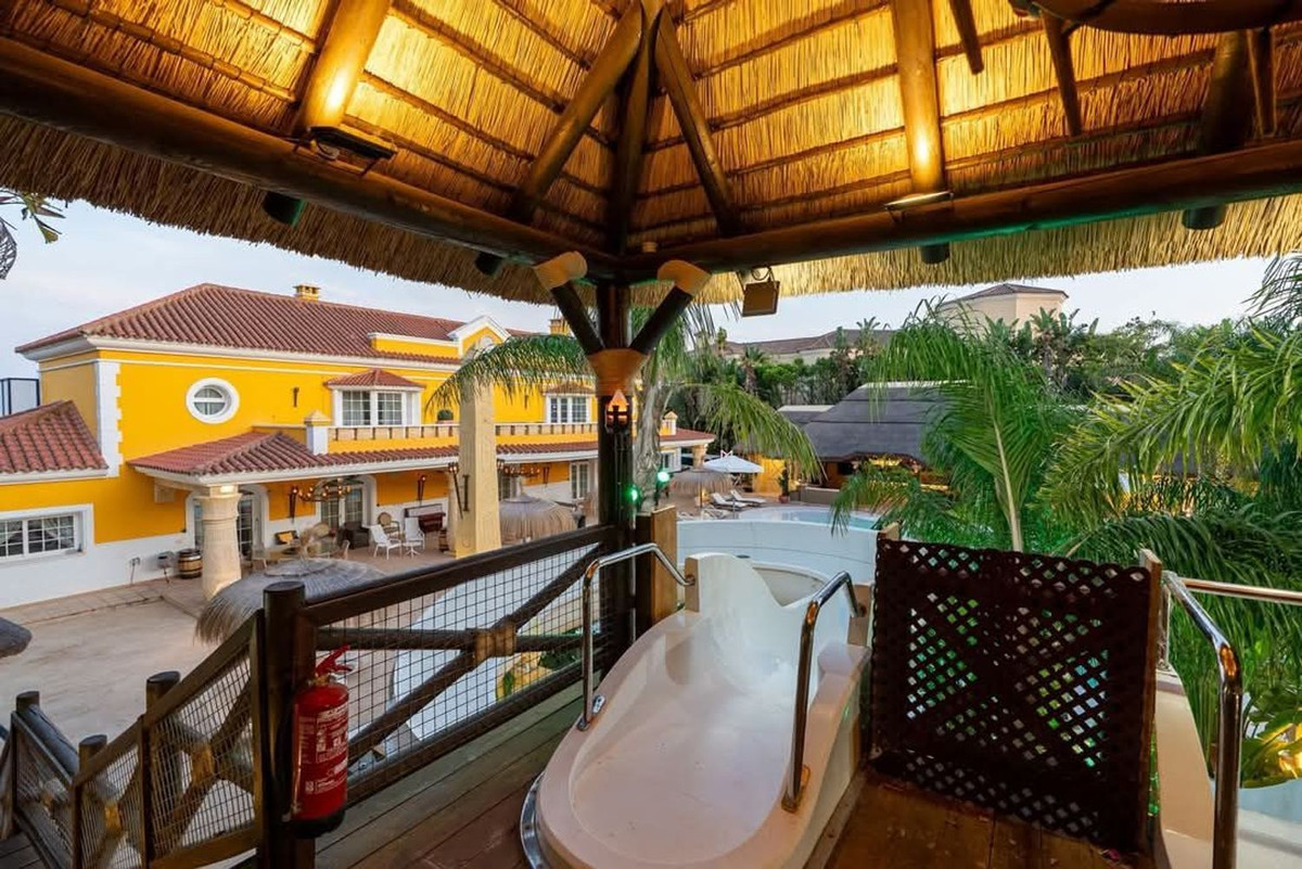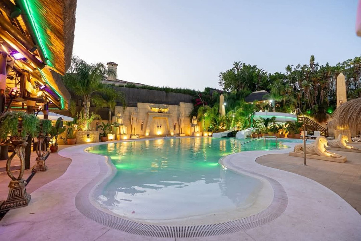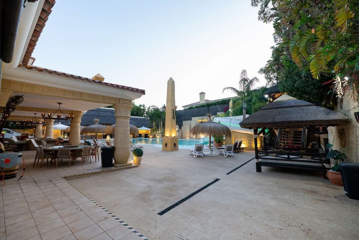 L'extérieur conserve une cohérence architecturale avec une piscine harmonieusement intégrée à un terrain de 3 000 m². Des espaces conçus pour des célébrations exclusives, des réunions privées et des moments inoubliables sous le ciel de Sotogrande.
