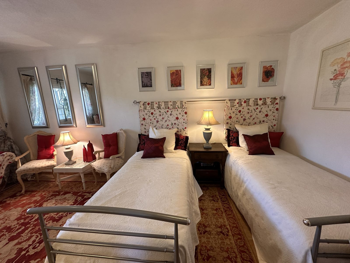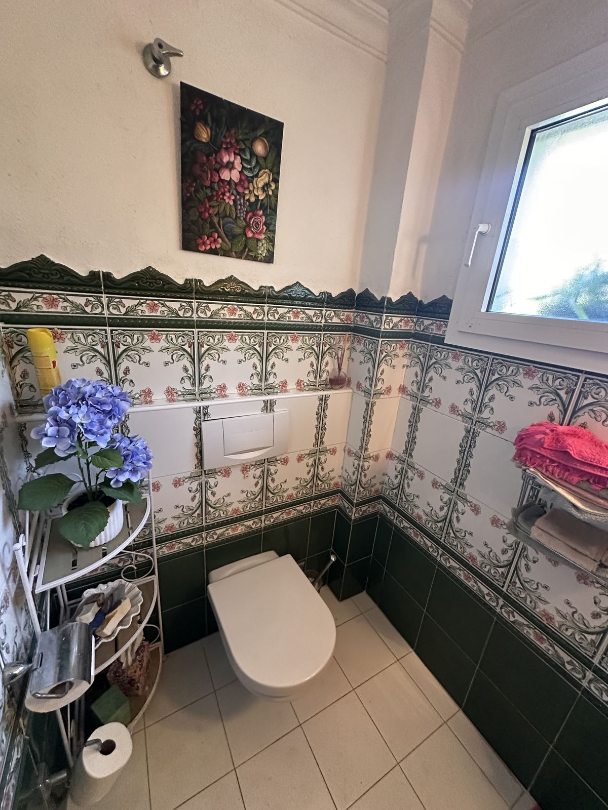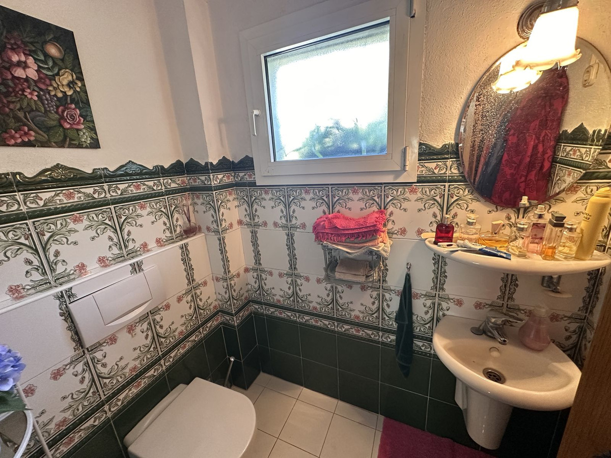 Au niveau inférieur, le potentiel est excellent pour l'aménagement d'un logement indépendant ou d'un espace pour les invités. Cet étage comprend une chambre, un grand salon pouvant également servir de seconde chambre, une buanderie avec salle de bains, un cellier et une charmante cave. De là, on accède à une magnifique terrasse ombragée, aménagée avec tables et canapés, idéale pour les repas en plein air et les réceptions aux beaux jours.
