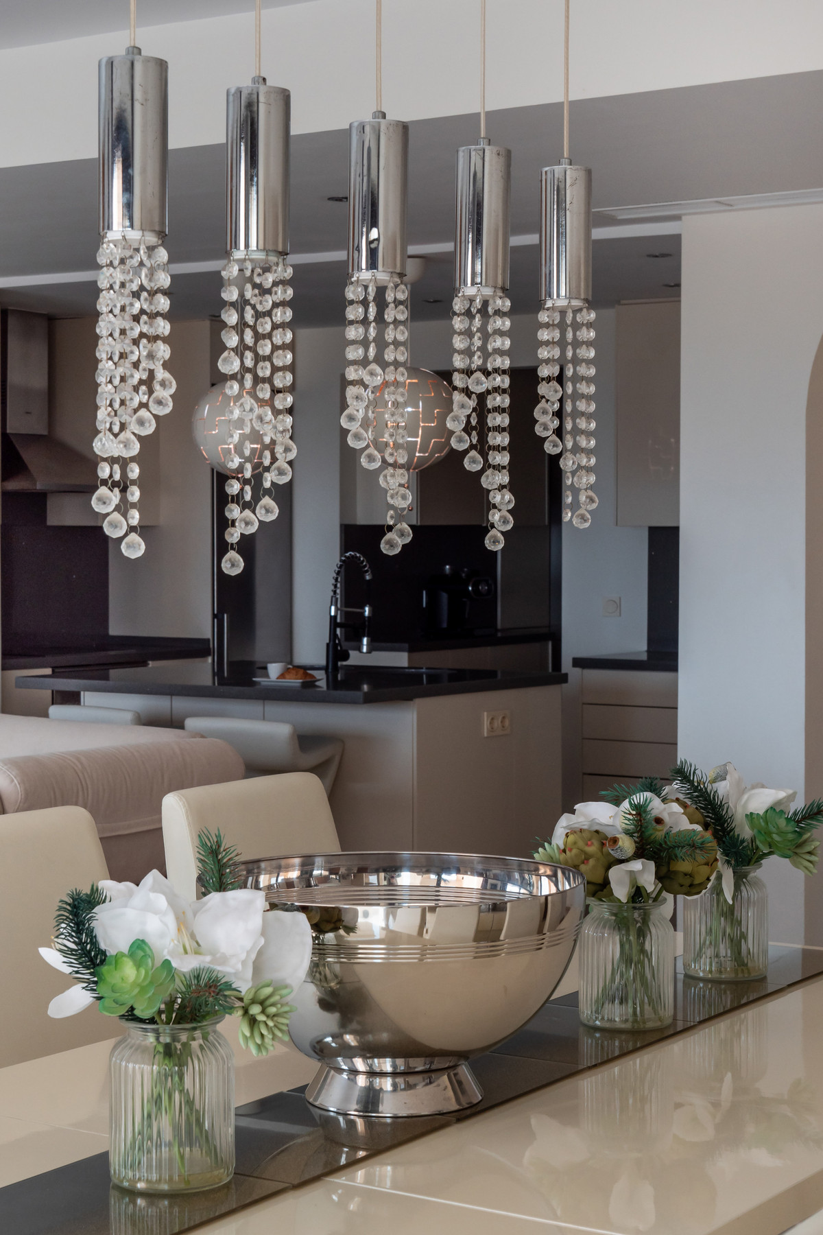 À l'intérieur, la propriété offre une cuisine ouverte et lumineuse sur le séjour, créant une transition fluide entre la préparation des repas, les repas et la détente. De larges baies vitrées coulissantes relient l'intérieur à la terrasse, permettant de profiter pleinement du plein air au quotidien : idéal pour savourer un café le matin, dîner en plein air ou simplement admirer le paysage côtier.