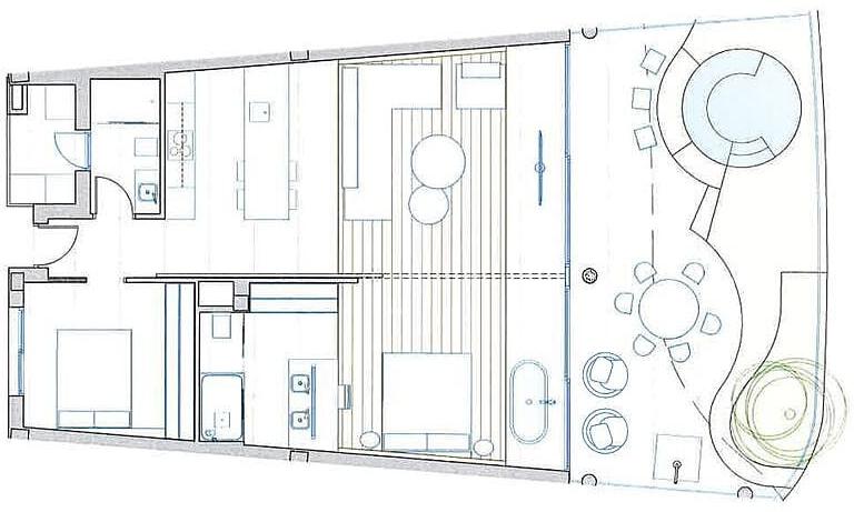 À l'intérieur, l'appartement se distingue par son design contemporain de style loft, privilégiant l'espace, la luminosité et la modularité. La cuisine ouverte, entièrement équipée d'électroménager haut de gamme, communique harmonieusement avec le séjour, créant une atmosphère lumineuse et conviviale. La chambre principale dispose d'une salle de bains ouverte avec douche, tandis que les toilettes sont séparées pour plus de confort. Une cloison coulissante permet d'ouvrir la chambre sur le séjour, offrant une sensation d'espace unique et une grande adaptabilité. De larges baies vitrées donnent sur une vaste terrasse de 49 m² avec une vue imprenable sur la vallée et la mer, prolongeant l'espace de vie vers l'extérieur et inondant l'intérieur de lumière naturelle. La terrasse est également équipée d'un jacuzzi privatif, créant un espace idéal pour se détendre tout en profitant du panorama. L'appartement comprend également deux places de parking et un cellier, ajoutant une touche de fonctionnalité à son design moderne.