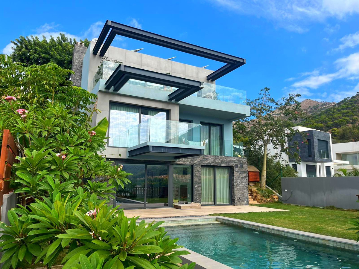 Magnifique villa de luxe offrant une vue panoramique sur Fuengirola, la mer et les montagnes. Cette villa de 254 m², construite sur plusieurs niveaux sur un terrain de 600 m², propose des espaces confortables et spacieux aux prestations haut de gamme. Elle comprend 5 chambres et 3 salles de bains, dont une suite parentale, ainsi qu'un grand dressing. La vue est exceptionnelle, témoignant d'une construction de grande qualité. Cette villa moderne est équipée d'une borne de recharge pour véhicules électriques et de panneaux photovoltaïques d'une capacité de 5 kWh. Les finitions sont en pierre naturelle et en porcelaine. N'hésitez pas à nous contacter pour visiter cette villa d'exception.