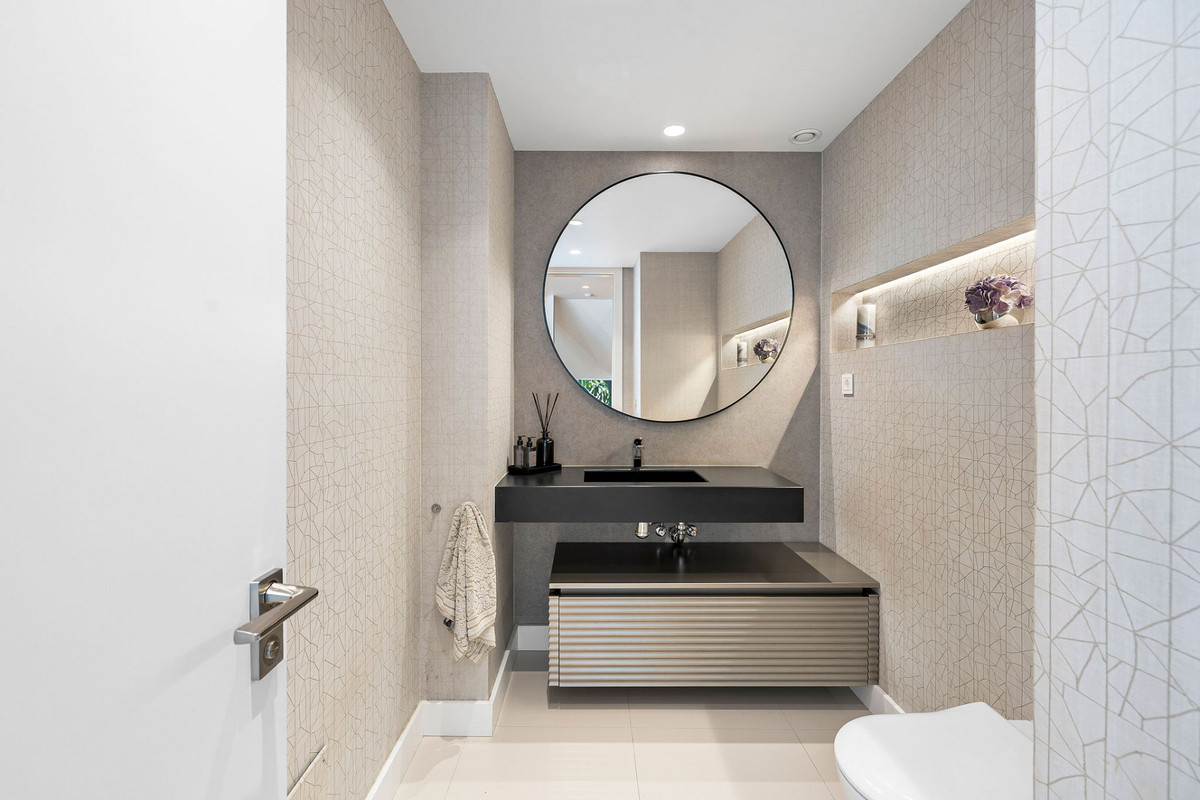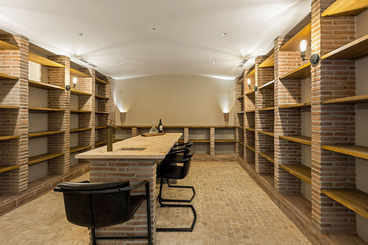 Le sous-sol est conçu comme un espace de vie fonctionnel. Il comprend un espace cinéma, une table de billard avec bar et coin TV, une salle de sport, une cave à vin et deux pièces de rangement. On y trouve également deux chambres, chacune avec sa propre salle de bains et une petite terrasse, avec un accès direct au jardin par un court escalier. De plus, un espace de vie indépendant, idéal pour une nounou ou une jeune fille au pair, dispose de son propre salon, d'une chambre, d'une salle de bains et d'un accès indépendant.