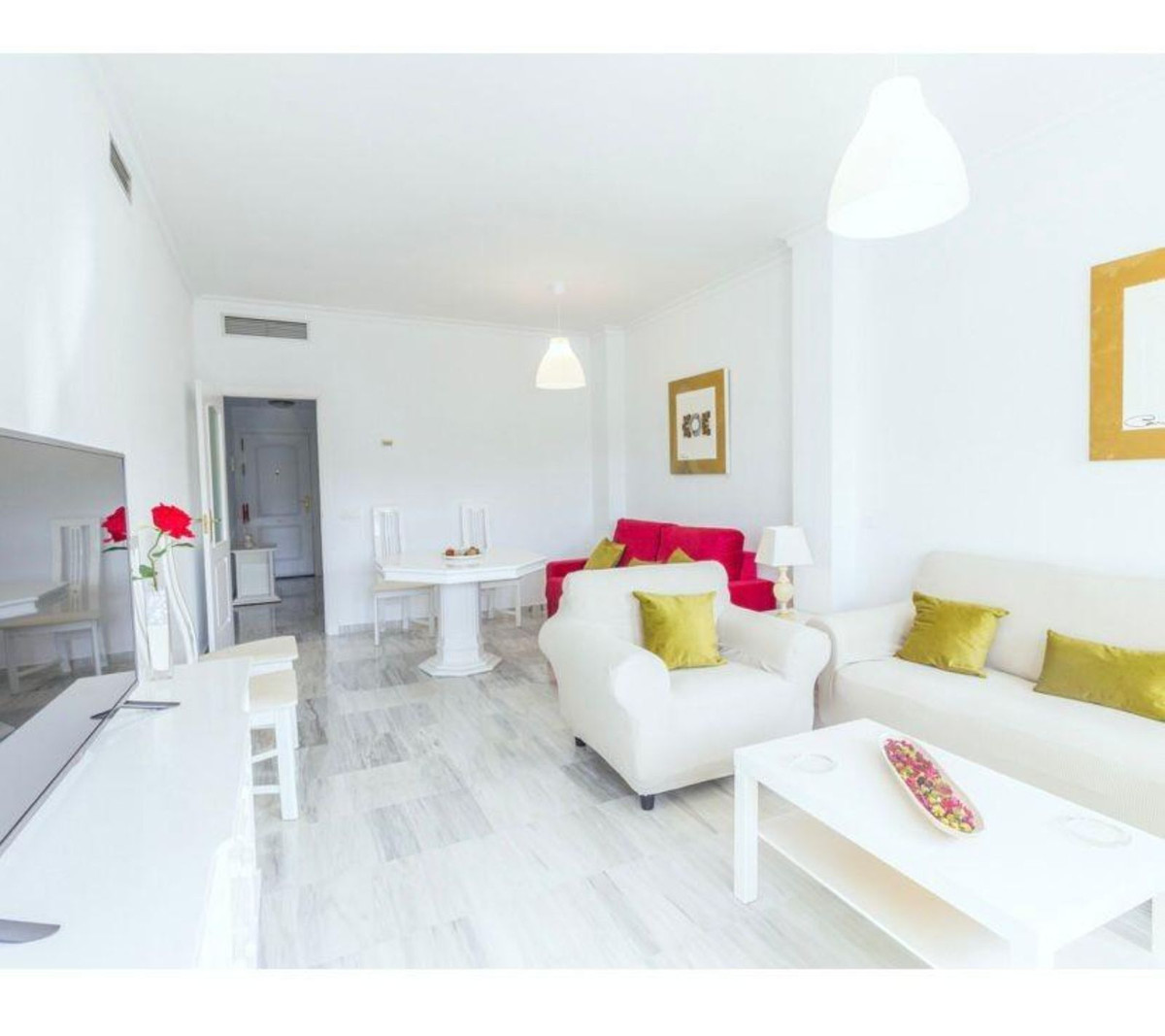 Charmant appartement T3 situé à Alhaurín Golf, dans un quartier sécurisé avec jardins et piscine commune. Parking extérieur, vue imprenable sur la Sierra de Mijas et le golf. En parfait état, très lumineux et bénéficiant d'une orientation idéale, cet appartement se compose de deux chambres, deux salles de bains (dont une attenante), une cuisine équipée et un grand séjour donnant accès à une terrasse privative avec vue panoramique. Une opportunité d'investissement unique. À visiter absolument.