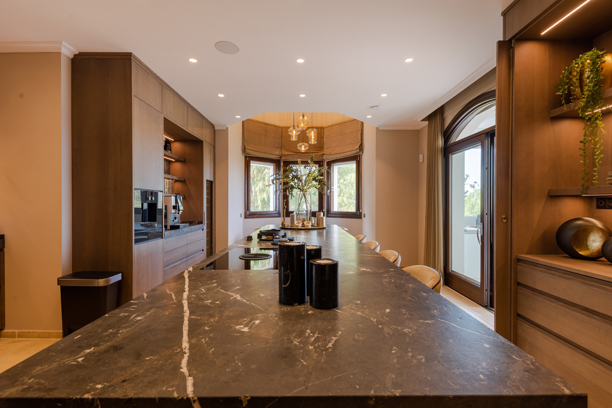 Inside, the villa has been carefully renovated, retaining its traditional Spanish charm while providing modern amenities. The luxurious interior includes an elegant main living room with vaulted ceiling, dining area, a second cosy living room, bespoke modern kitchen with