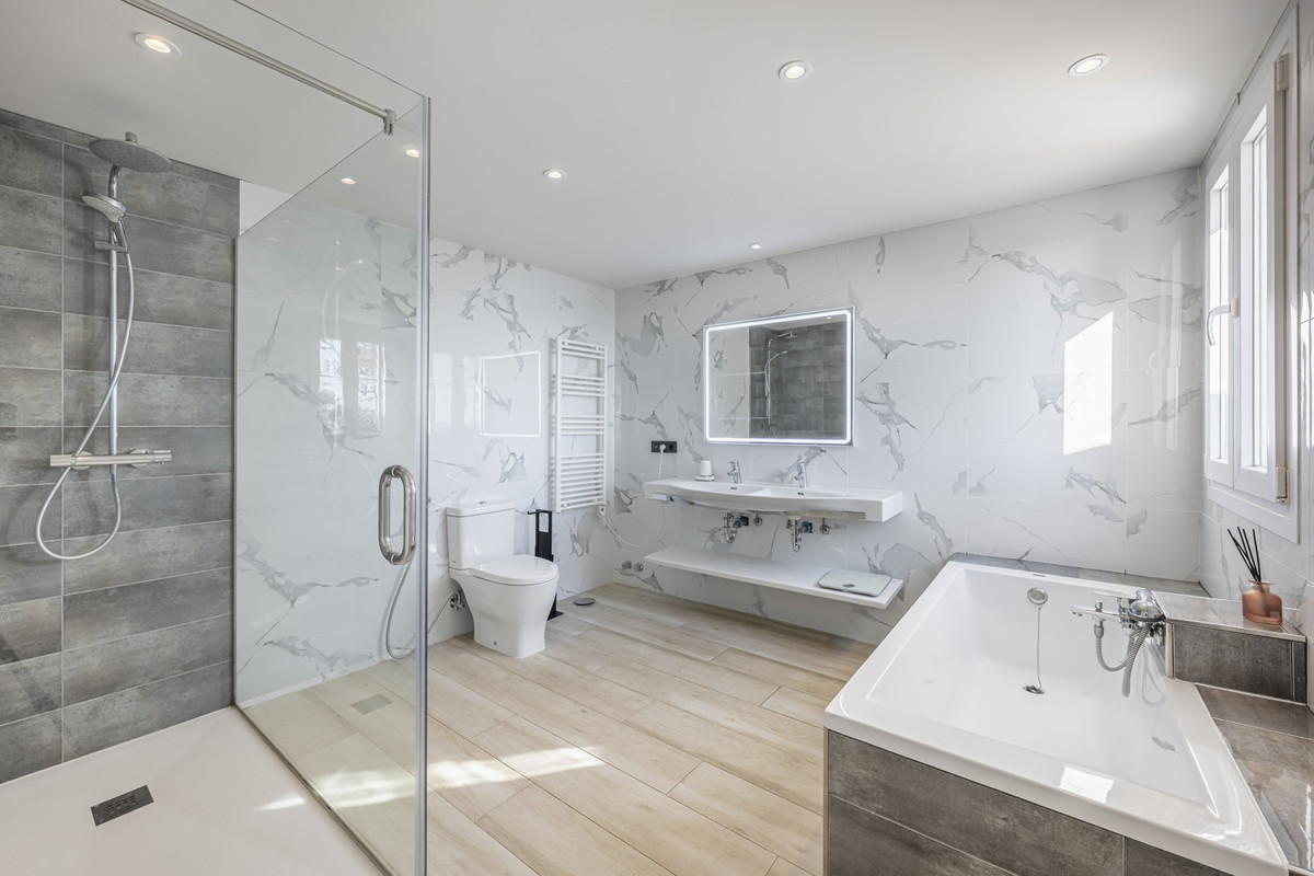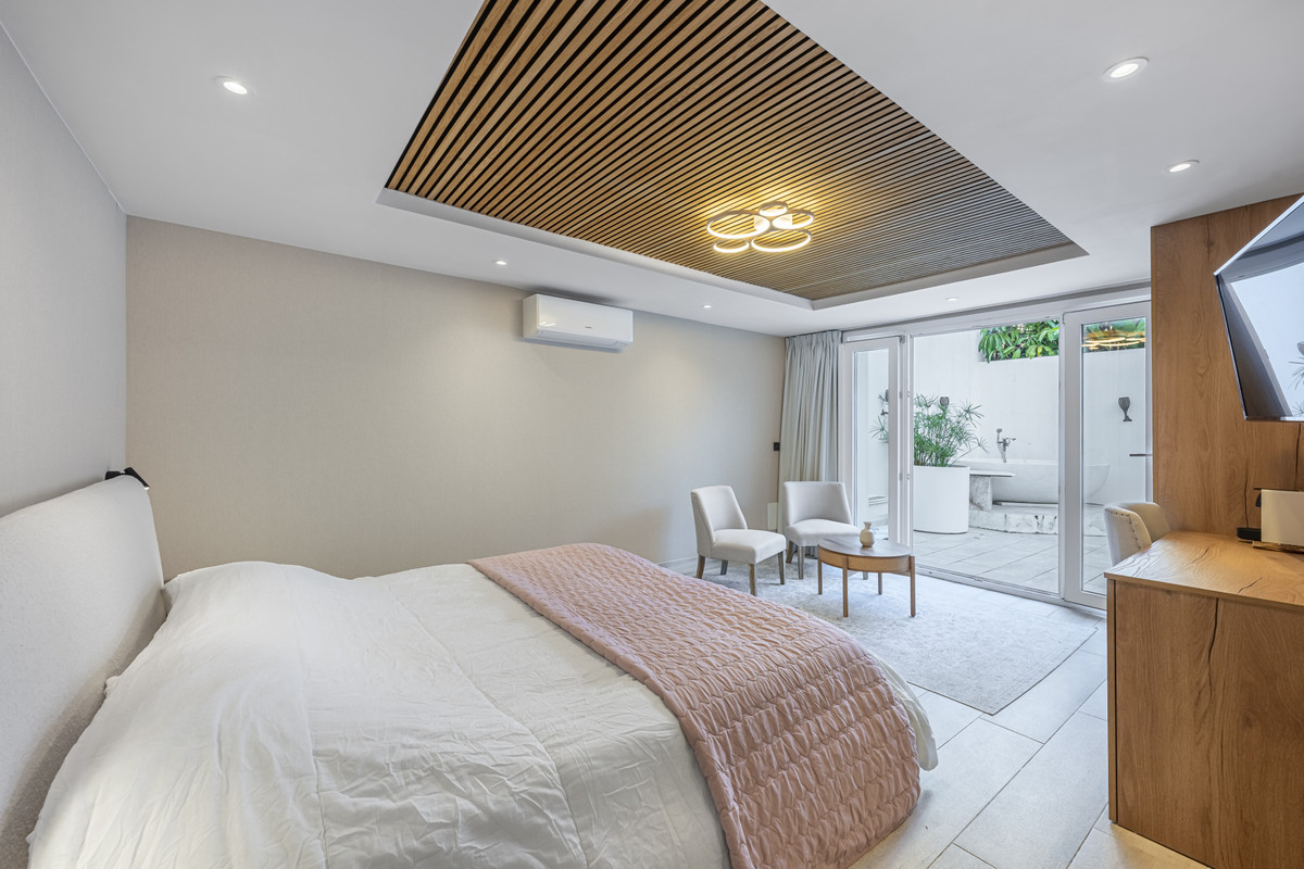 La villa comprend six chambres spacieuses, chacune avec sa propre salle de bains privative, ainsi que deux toilettes pour les invités, offrant ainsi un agencement idéal pour la vie de famille et les réceptions. Chaque chambre est insonorisée, garantissant un confort et une intimité optimaux dans toute la maison.