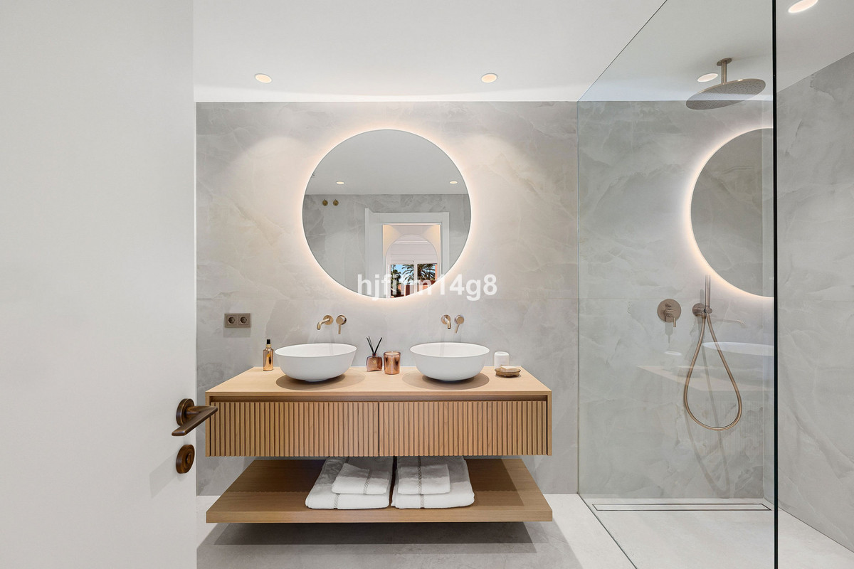 L'étage supérieur est entièrement dédié à l'impressionnante suite parentale, conçue comme un havre de paix. Elle comprend un dressing, une luxueuse salle de bains attenante et un accès à sa propre terrasse exposée plein sud. Cette terrasse offre des espaces ombragés et ensoleillés, un barbecue intégré et une vue imprenable sur la mer Méditerranée et les magnifiques jardins paysagers de Torre Bermeja, permettant ainsi de profiter pleinement du climat agréable d'Estepona tout au long de l'année.