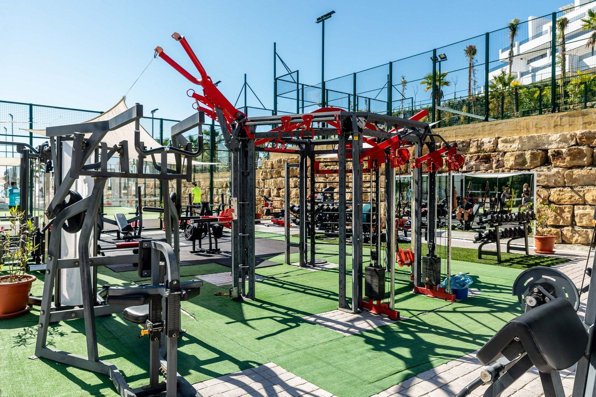Mirador de Estepona Hills is a new, fully gated private resort with 24-hour security and concierge service. It boasts a spectacular central pool area with its own restaurant open during peak season. There is a fully equipped indoor gym and an outdoor gym with a café, paddle tennis courts, and a second swimming pool, all surrounded by impeccably maintained gardens and walking paths within the resort. It has ample visitor parking and charging points for electric cars and e-bikes.