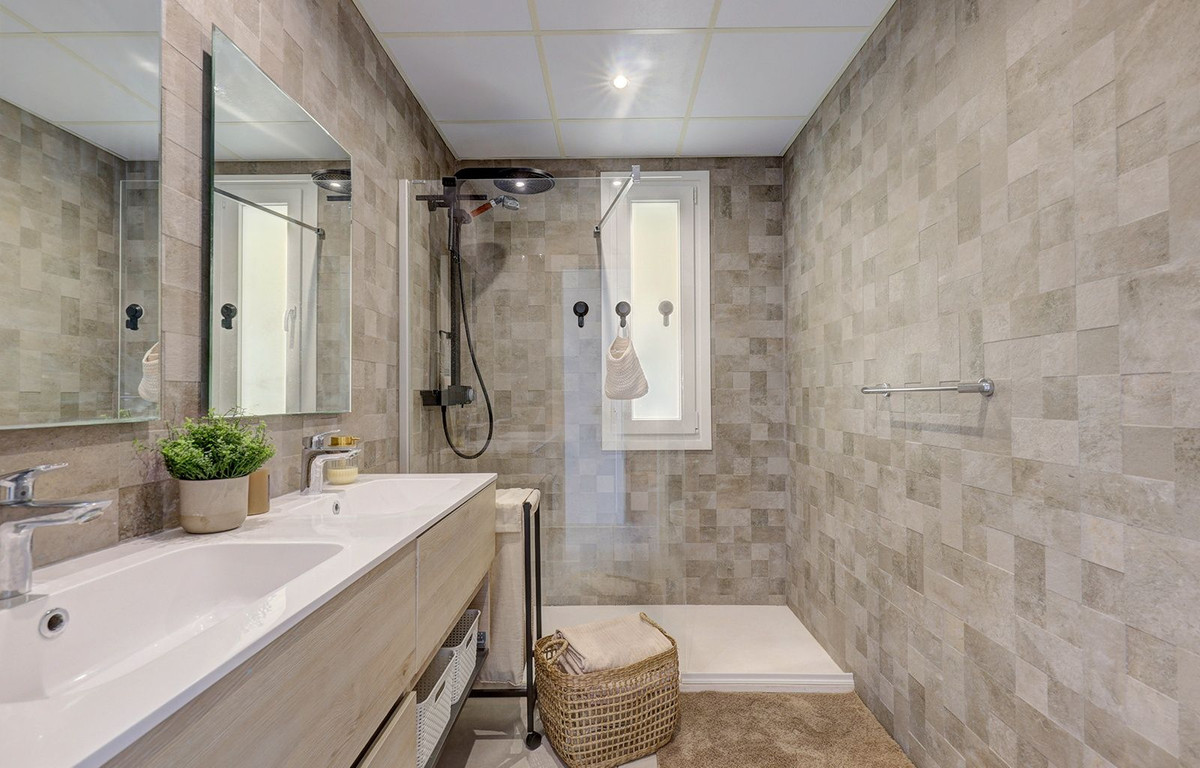 This beautifully presented modern apartment with a private garden offers a stylish open-plan living and dining area, complemented by a fully equipped kitchen featuring high-end SIEMENS appliances. The living space seamlessly extends to a private terrace, creating the perfect setting for indoor-outdoor living, while the private garden provides additional outdoor space to fully enjoy the Mediterranean lifestyle.