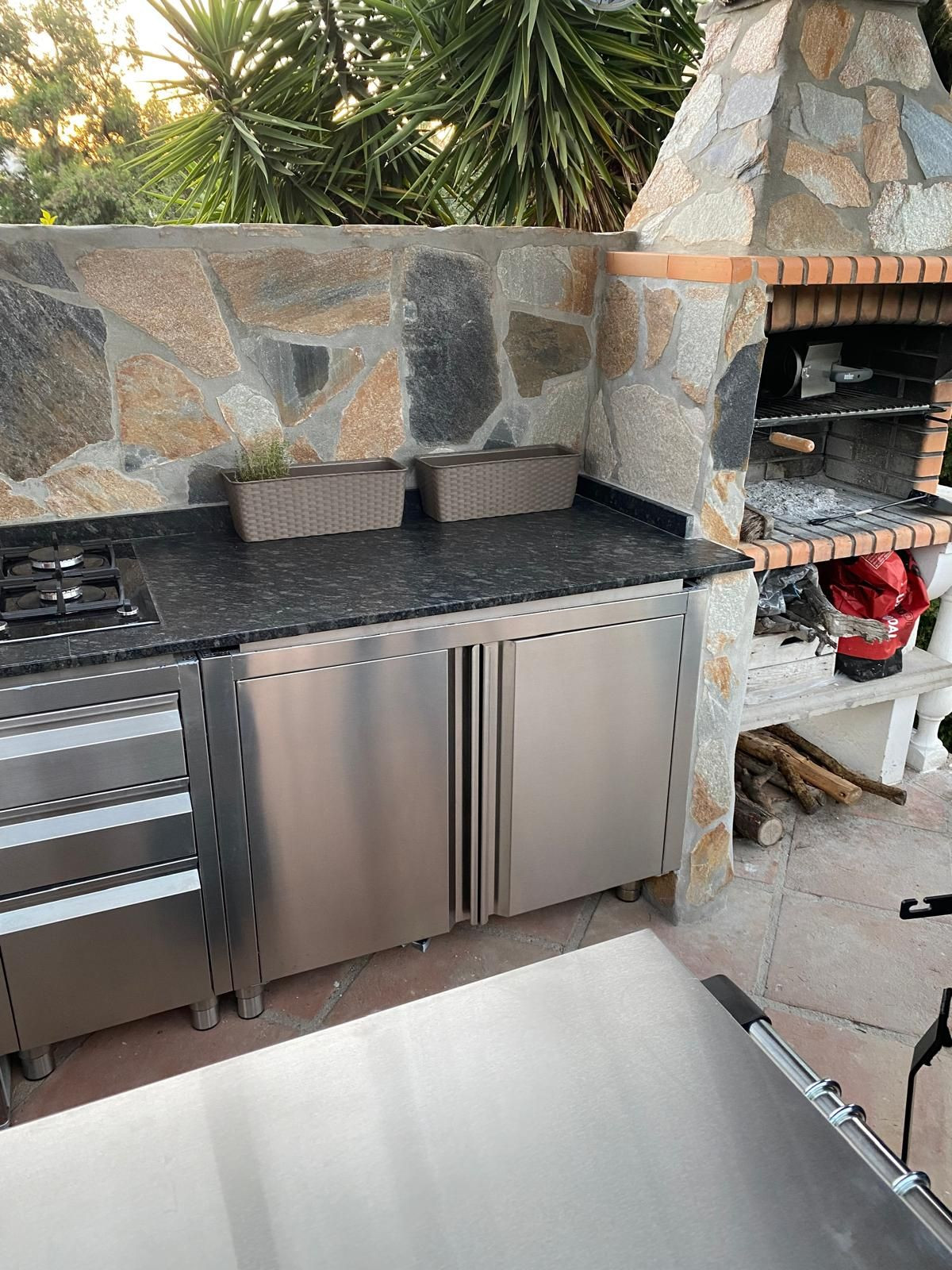 From the spacious terraces that surround the entire property, you descend a beautiful and wide stone staircase to access the pool area (with Hawaiian pergola and sunshade, outdoor kitchen and stone barbecue, large jacuzzi for 5 people, shower and toilet) and the private apartment, a true little gem for friends and family or for renting out. The wonderful 30-square-meter studio, decorated in Bali/Polynesian style, offers a bathroom with a large shower, an open-plan kitchen, a living area with a double sofa bed, and a sleeping area with a double bed. The terraced area around the pool (5x10 meters) is ideal for spending hot summer days and enjoying cool evenings under the stars. Around the pool, there is also an area with lemon trees, ideal for creating a vegetable garden.