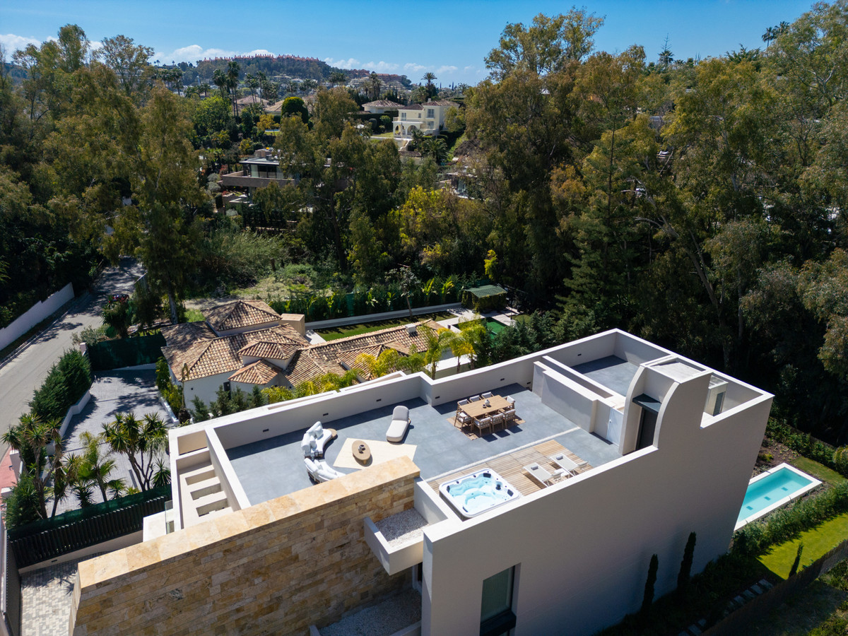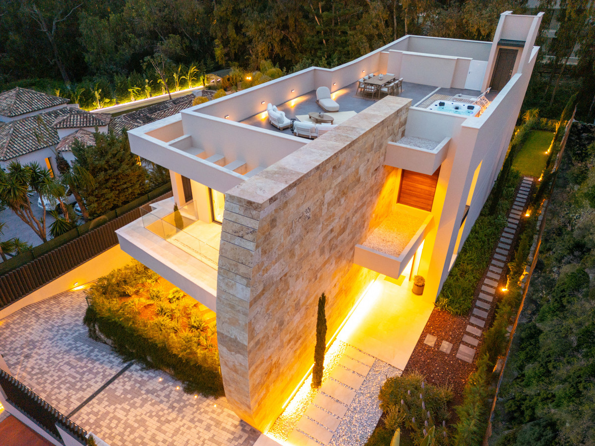 Set in the exclusive enclave of La Cerquilla, this exceptional brand-new villa for sale is a masterclass in contemporary luxury, offering five spacious bedrooms and seven beautifully appointed bathrooms across four meticulously designed levels. A striking double-height entrance creates an immediate sense of grandeur, flooding the home with natural light and setting the tone for the elegant interiors beyond. The main living area features a stylish fireplace and flows seamlessly into an open-plan kitchen, designed for both everyday living and sophisticated entertaining. The property is further enhanced by a state-of-the-art home automation (domótica) system and an advanced automatic air renewal system, ensuring optimal comfort, efficiency, and air quality throughout.