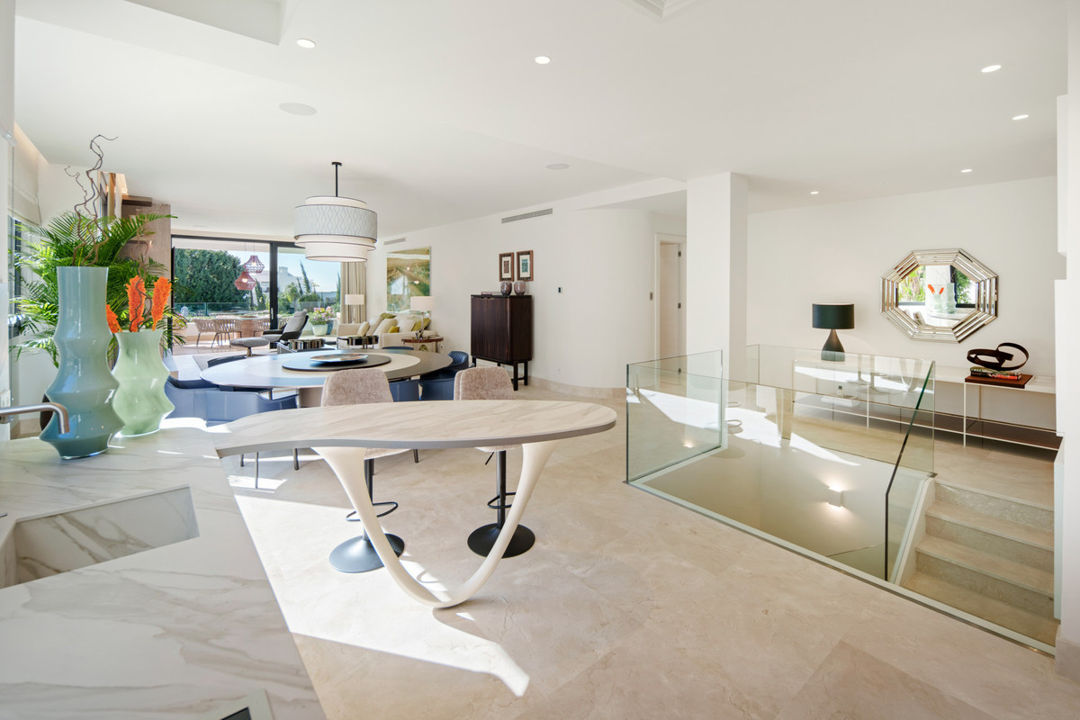 Atlas est un appartement duplex de plain-pied situé à Reserva de Sierra Blanca, offrant quatre chambres, quatre salles de bains et un vestiaire pour les invités, aménagés sur un niveau de divertissement discret en dessous et un étage principal calme au-dessus, avec des intérieurs signés Pedro Peña, des menuiseries sur mesure de Vaneva, des installations techniques de Proinsermant, des systèmes de climatisation de Technoclima et une terrasse privée avec vue sur le jardin et la piscine, ainsi que deux places de parking accessibles de l'intérieur.