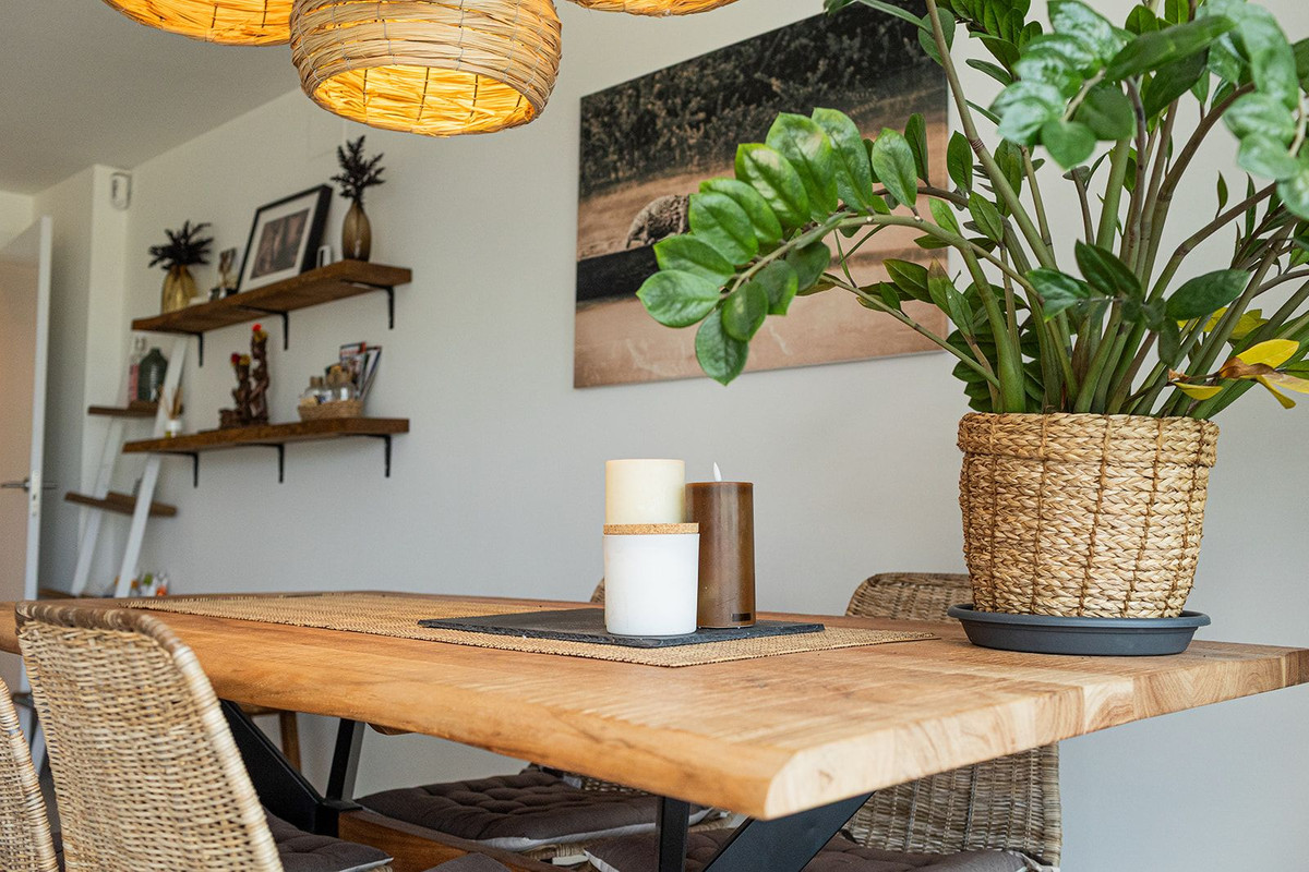 La cuisine entièrement équipée présente des finitions haut de gamme et s'intègre parfaitement à l'espace de vie, ce qui la rend idéale au quotidien comme pour recevoir des invités. Les deux chambres sont spacieuses et dotées de placards intégrés et de salles de bains élégantes à l'esthétique moderne et apaisante.