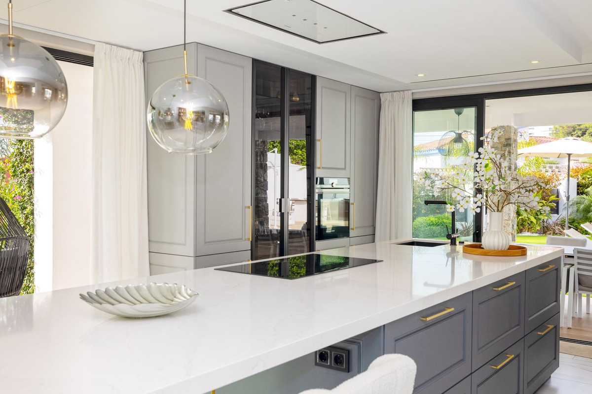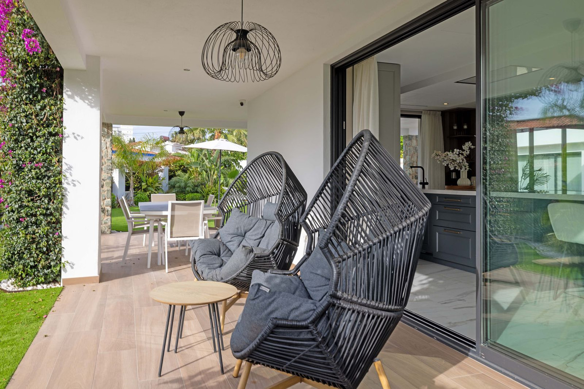 À l'extérieur, la propriété offre une superbe piscine privée entourée de jardins soignés, idéale pour profiter du climat de la Costa del Sol. Elle dispose également d'une terrasse de rêve, parfaite pour se détendre ou recevoir des invités, et d'un garage pouvant accueillir jusqu'à six véhicules – un luxe rare dans la région.