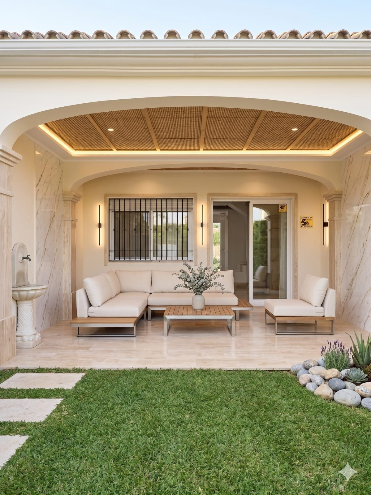Une fois les travaux de rénovation commencés, l'intérieur deviendra encore plus moderne et luxueux avec une cuisine ouverte, de grandes portes coulissantes en verre donnant sur la terrasse couverte, un espace de vie lumineux et ouvert, etc.