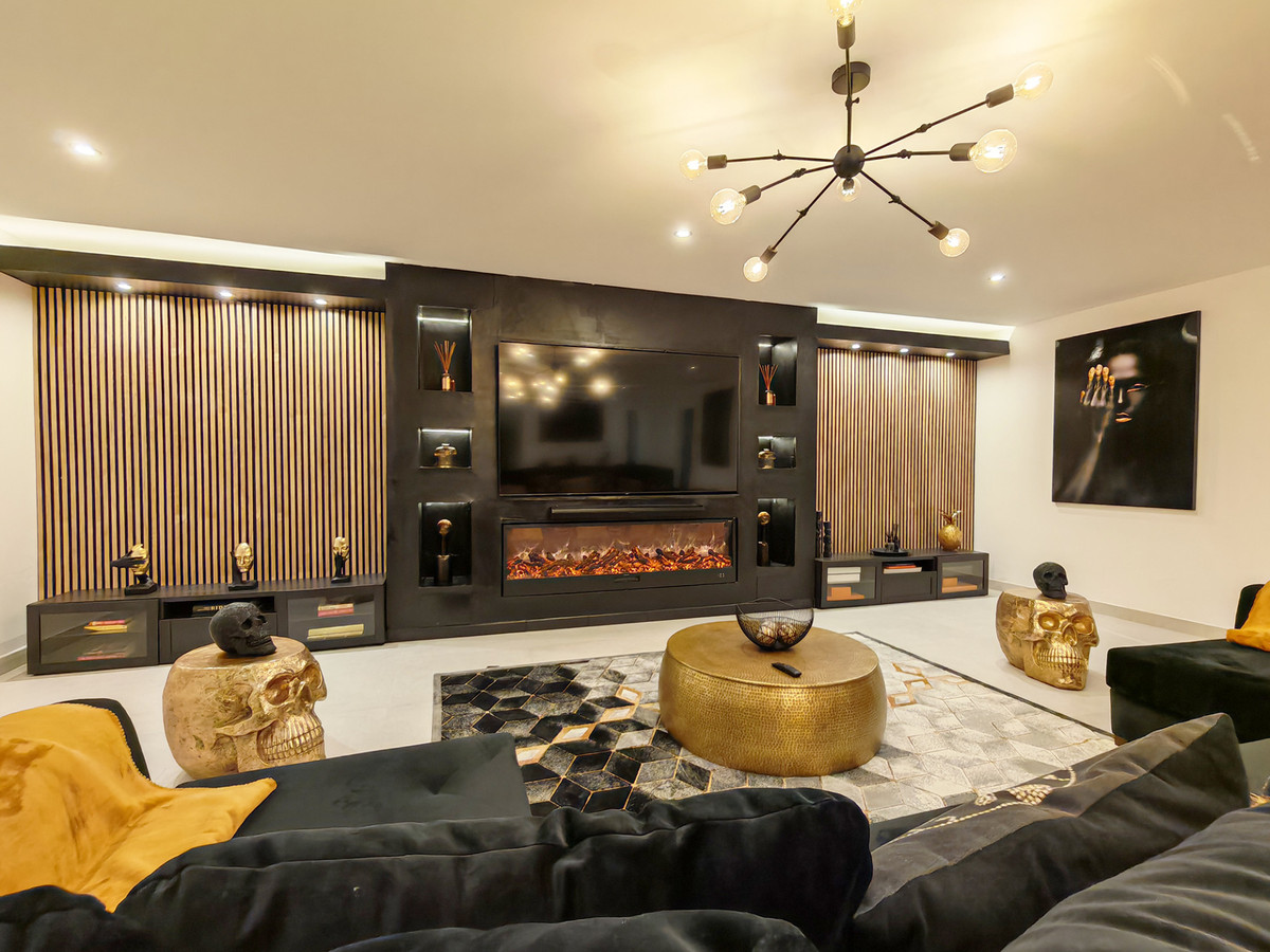 Villa à vendre à La Resina Golf, Estepona, offrant 5 chambres, 4 salles de bains (dont une suite parentale), une orientation ouest, une piscine privée, un garage double et un jardin privatif. Surface habitable : 308,46 m², terrain : 521,21 m², surface utile : 308,46 m², terrasse : 95 m². Ce logement offre les prestations suivantes : accès direct au golf, climatisation, entièrement meublé, cuisine équipée, buanderie, cheminée, jacuzzi, sous-sol, chambre d’amis, débarras, salle de sport, alarme, solarium, entrée sécurisée, double vitrage, interphone vidéo, tout neuf, salle à manger, barbecue, service de sécurité 24h/24, toilettes invités, terrasse privée, cuisine équipée, salon, bureau, vue sur la montagne, vue sur le golf, piscine chauffée, système d’irrigation automatique, domotique, système audio surround Dolby, buanderie, internet Wi-Fi, terrasse couverte, placards intégrés, vue sur le jardin, vue sur la piscine, vue panoramique, salle de cinéma, chauffage au sol (salles de bains), cave à vin, à proximité d’une aire de jeux pour enfants, à proximité de la mer/plage, à proximité du golf, terrasse non couverte, salle de jeux, portes vitrées, salle à manger séparée, cuisine ouverte, balcon, système de refroidissement au plafond, à proximité des écoles, appartement d’invités, au sein du complexe de golf, bureau et animaux domestiques admis.
