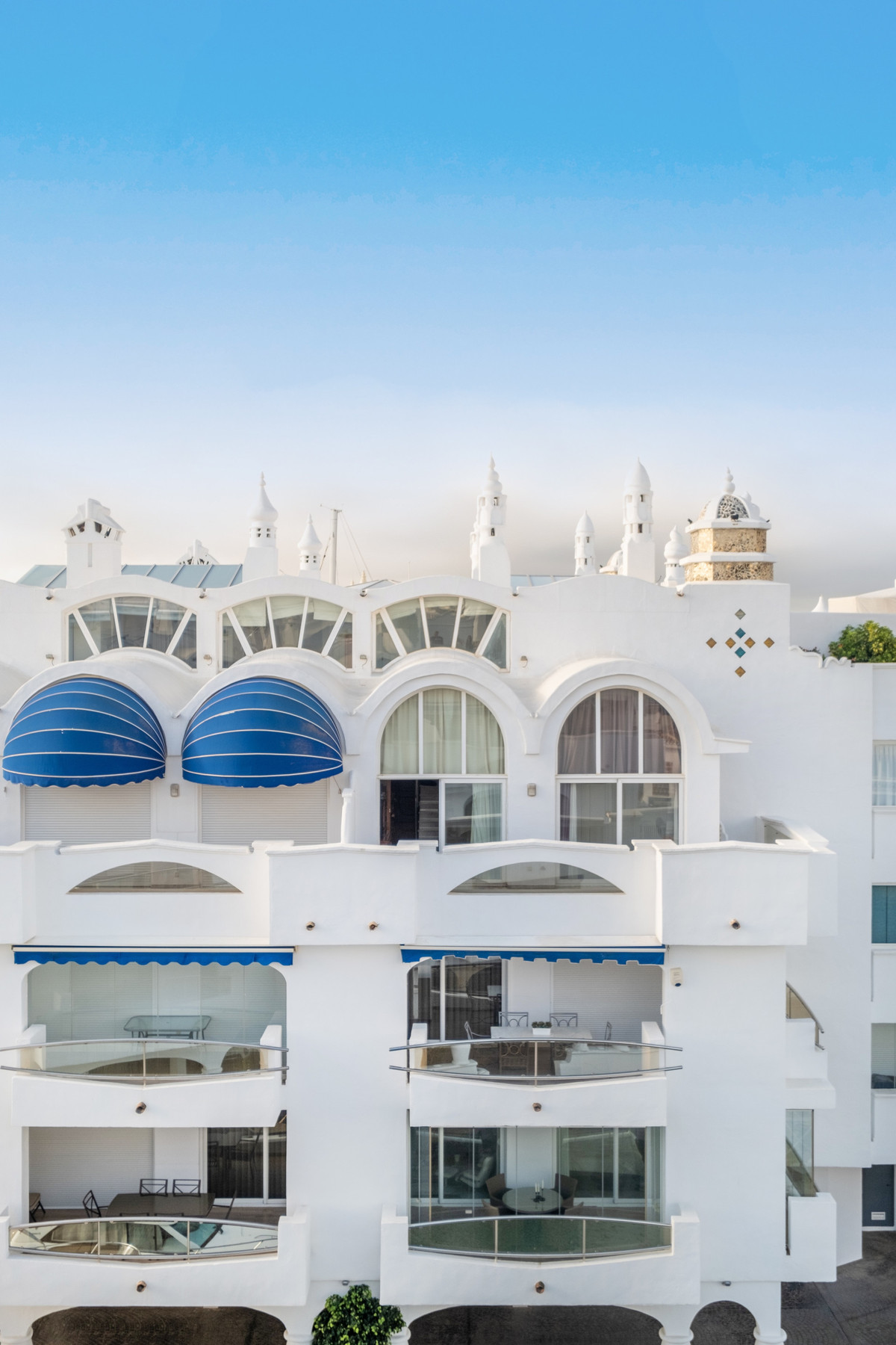 This duplex penthouse in Benalmadena Puerto Marina comes with three bedrooms and two bathrooms, ready for a little makeover. It's in a safe community with two pools in the community, and the highlight is the fantastic view of the port and the Mediterranean Sea right outside your window.